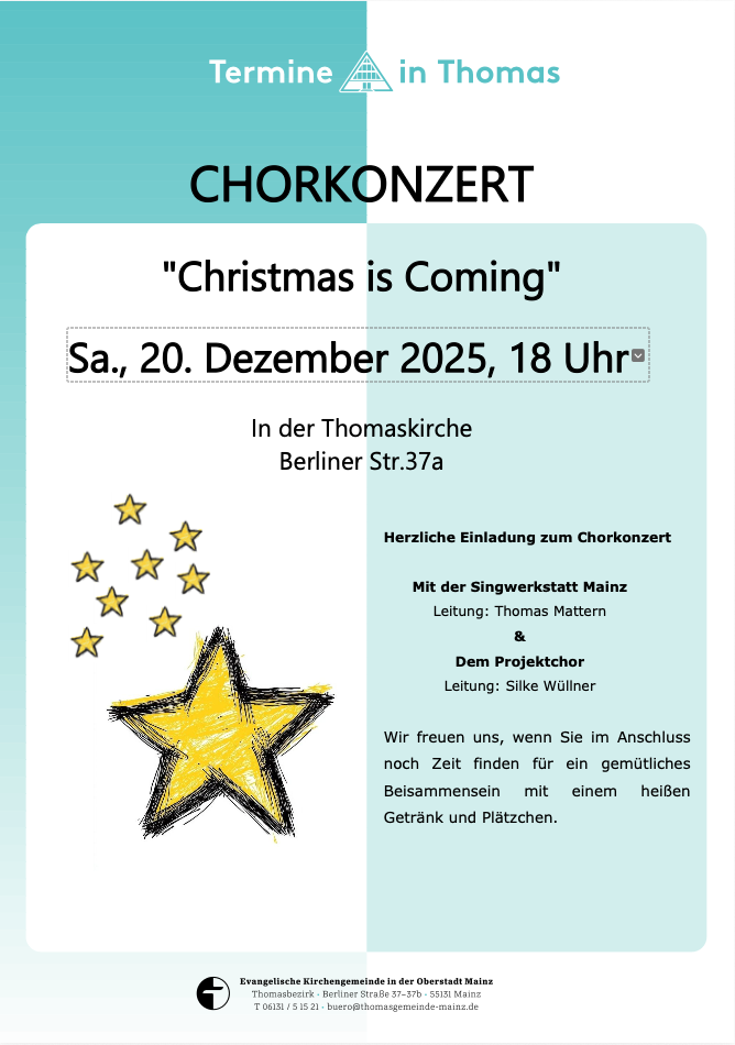 Zusammen mit den dem Chorprojekt »Christmas is coming« der Evangelische Kirchengemeinde in der Oberstadt Mainz